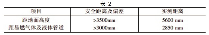 其中距地面高度實測值已經(jīng)滿足標(biāo)準(zhǔn),但是與燃氣體的距離太近,容易產(chǎn)生起火,一旦發(fā)生起火事件,那么后果是十分嚴(yán)重的。在檢測的過程,還發(fā)現(xiàn)有一個液體管道是后來加上去的,與原裝的配件存在偏差,并且在安裝的時候沒有考慮安全距離的問題,從而加劇了安全隱患的數(shù)值。